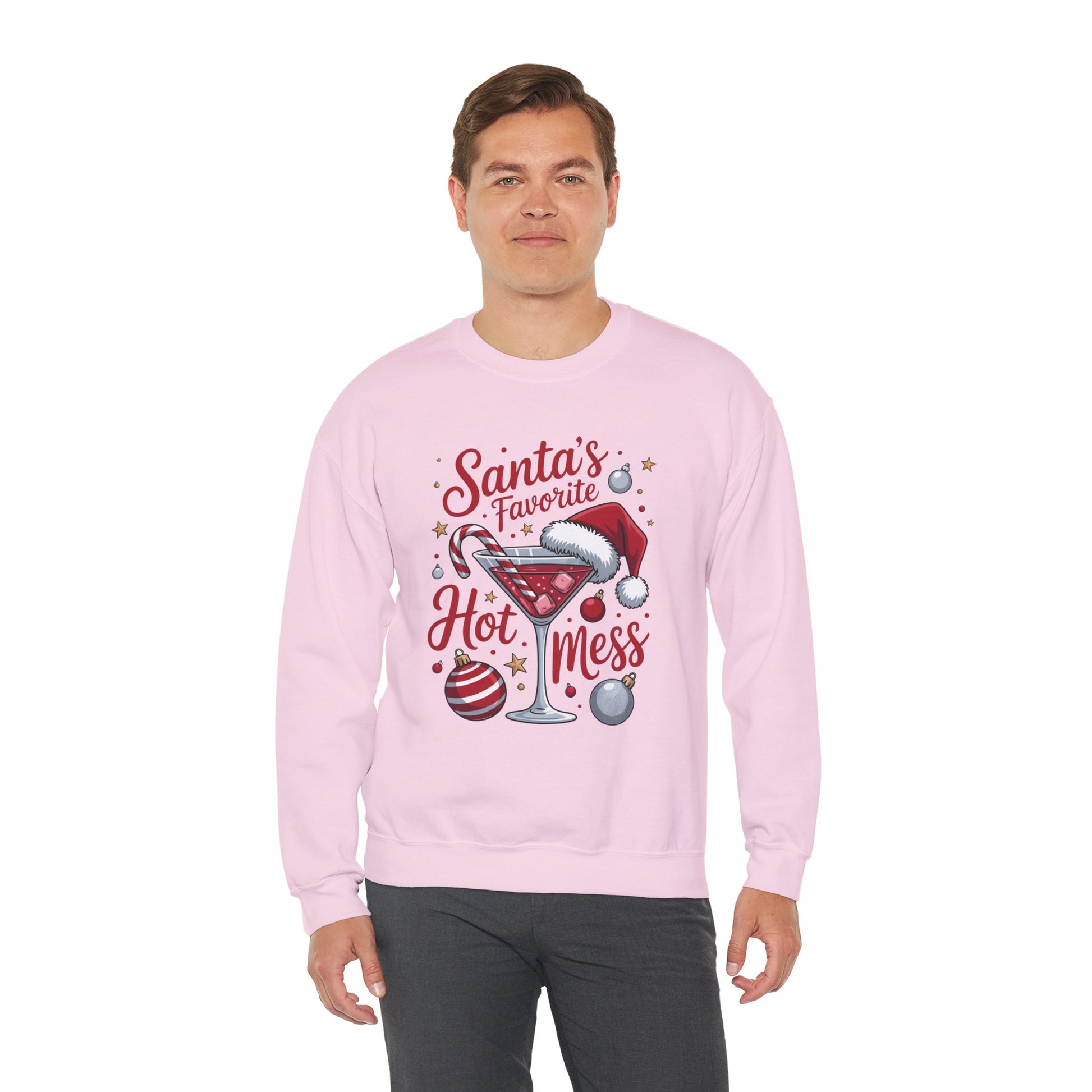 Crewneck Sweatshirt — "Santa's Favorite Hot Mess" Christmas Cocktail Sweatshirt