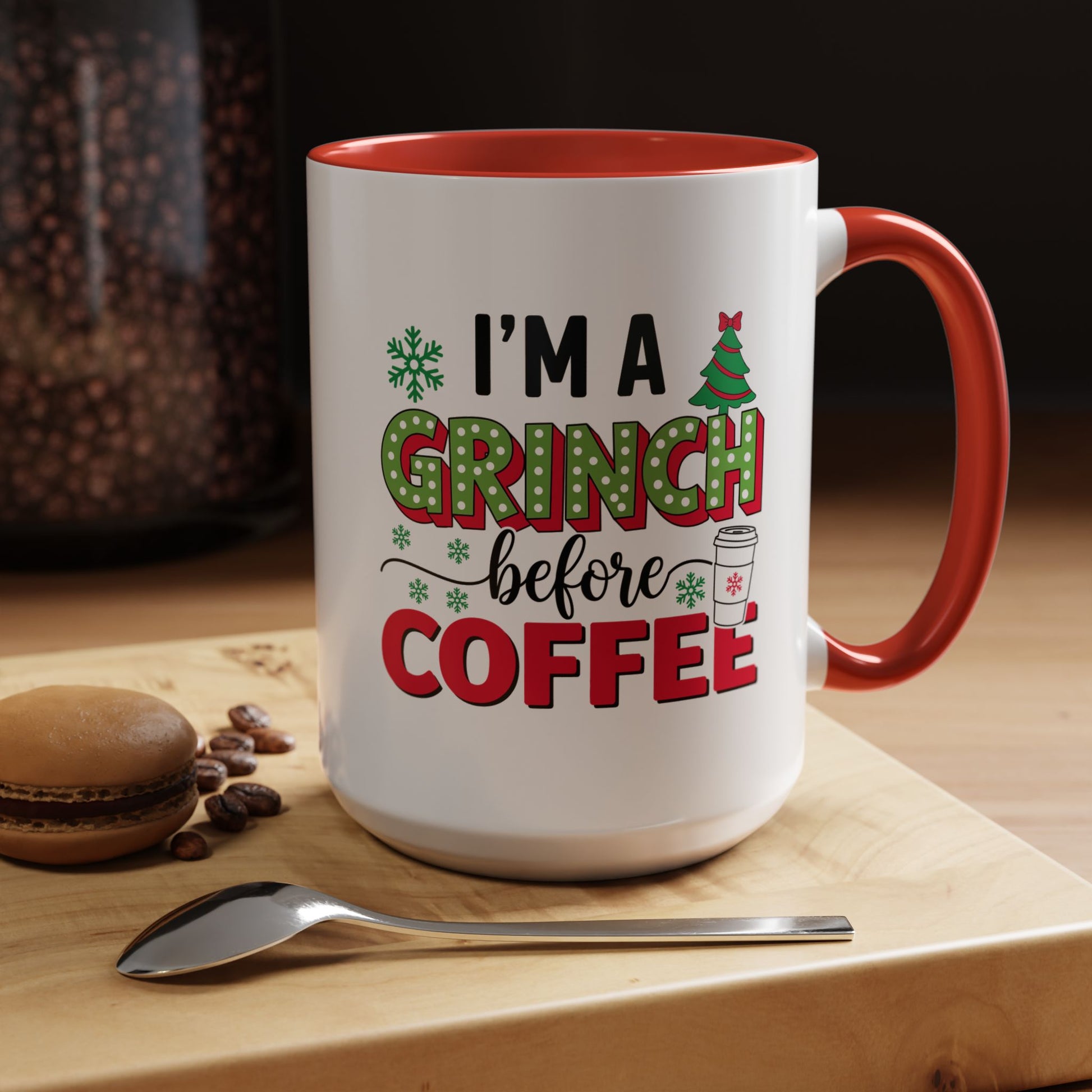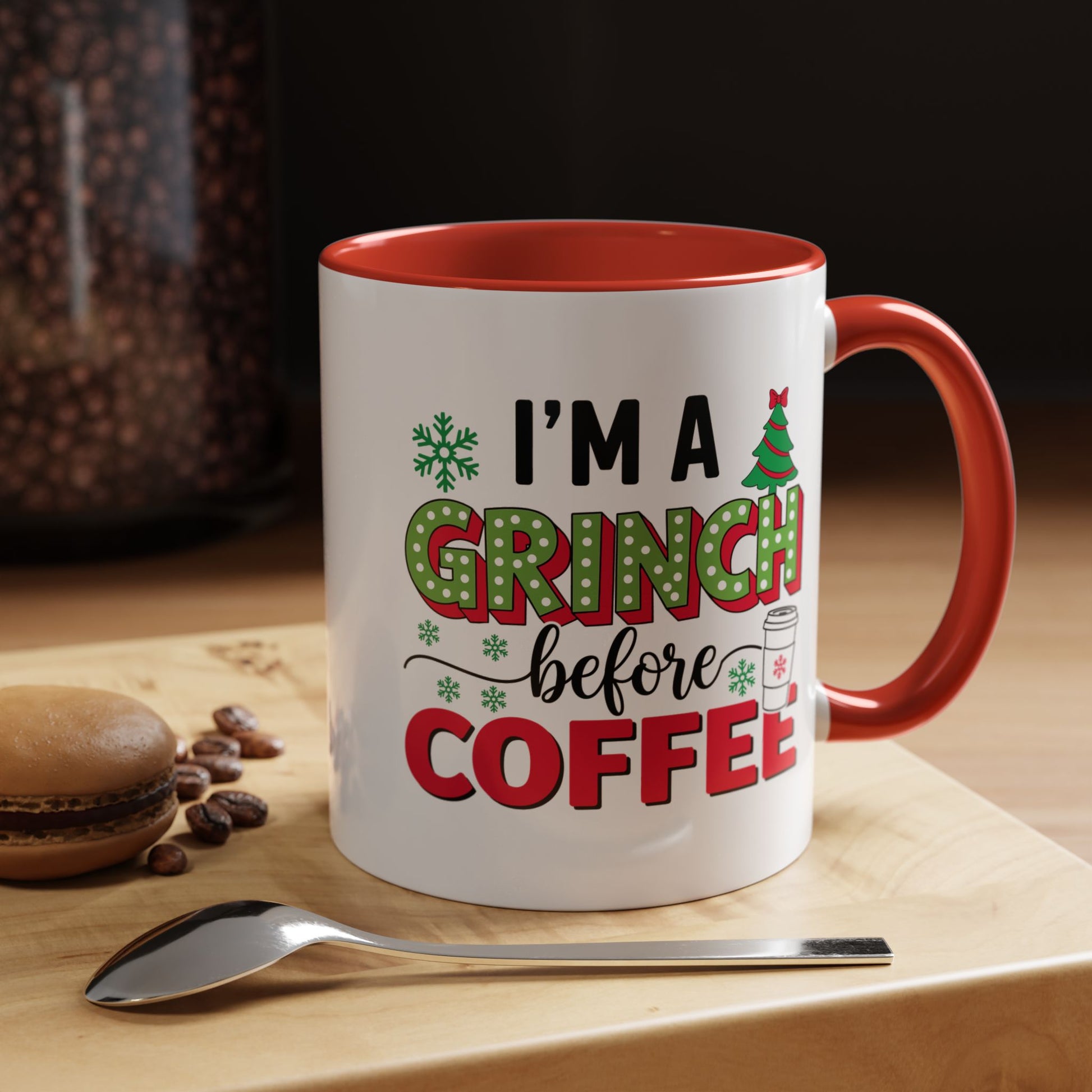 I'm a Grinch Before Coffee Accent Coffee Mug — Funny Christmas Coffee Cup (11/15oz)